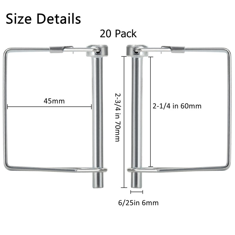 ZOOFOX 20 Pieces Trailer Coupler Pin, Heavy-Duty PTO Shaft Locking Pin Set, Square Wire Locking Pin for Farm Trailers Wagons Towing, Lawn and Hitches, 6/25" x 2-3/4"