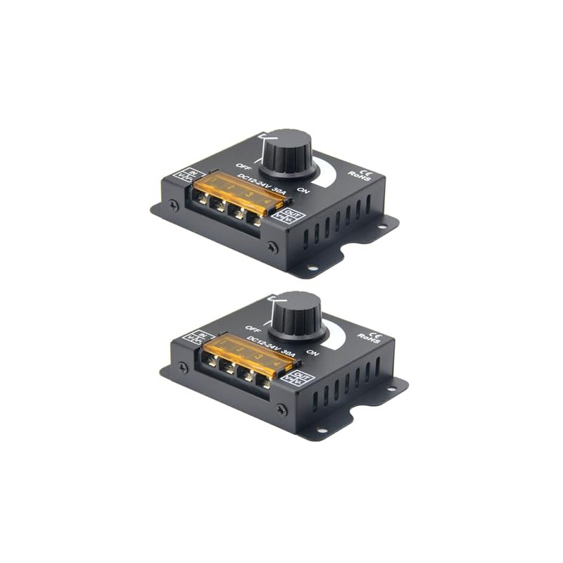 ZOOKOTO 2Pack 12V/24V DC 30A LED PWM Dimmer Controller - Single Channel Dimming Controller for LED Strip Lights - 5050, 3538, 5630 Single Color Light Ribbon
