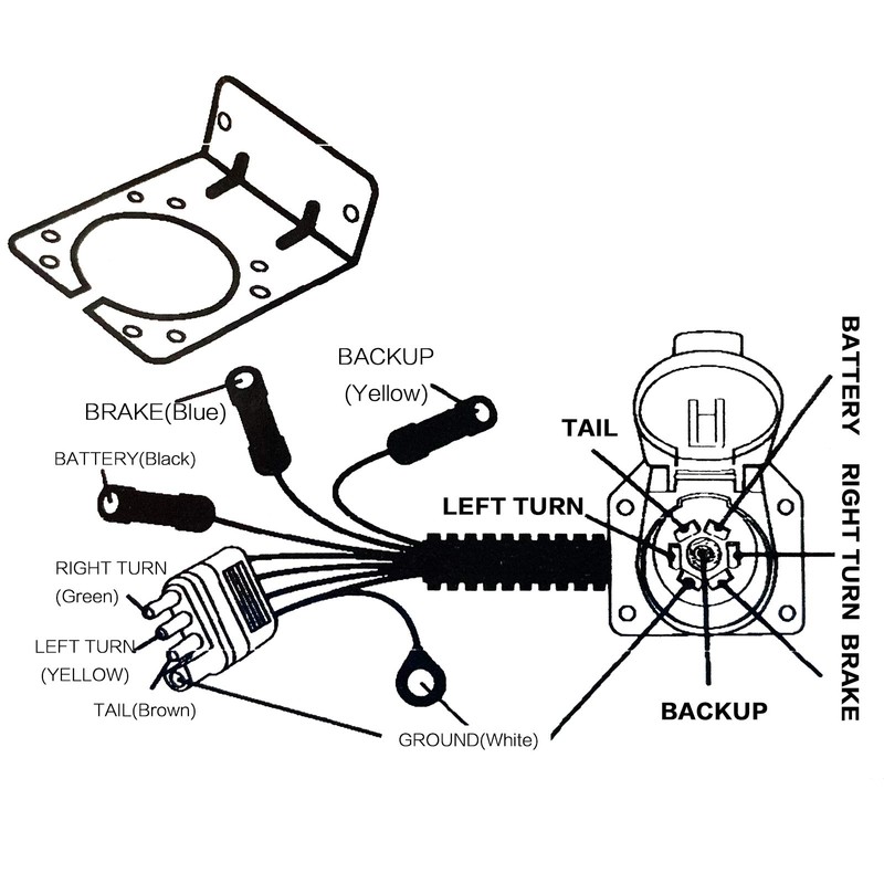 • This adapter converts the 4-pin flat socket to the 7-pin blade round type socket. 7-way connects tail light, reverse light, turn signals, brakes and auxiliary power