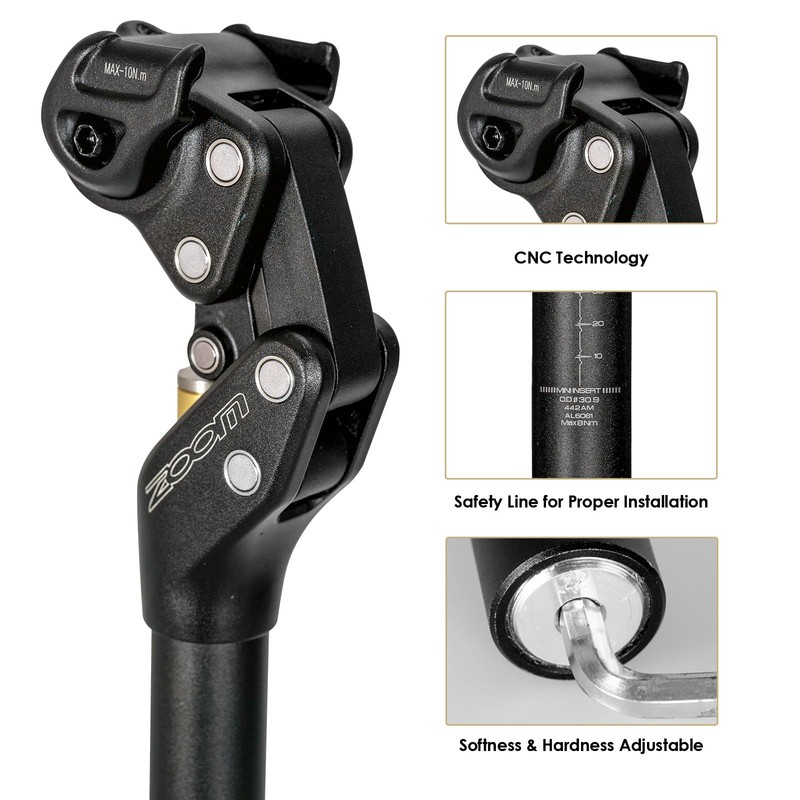 Zoom SP442 Suspension Seatpost – 27.2mm / 30.9mm / 31.6mm Adjustable Shock-Absorbing Bike Seat Post, 45mm Travel Four-Bar Linkage for MTB, Gravel, Road & E-Bikes – Supports Riders up to 242 lbs