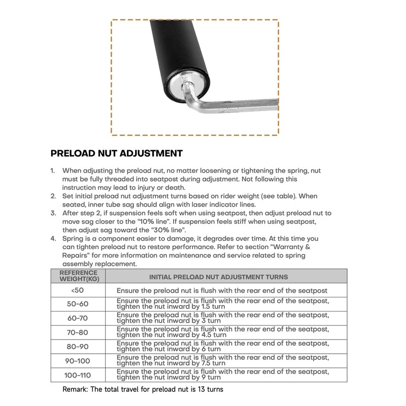 - 【Weight-Sensitive & Adjustable Preload】Preload tuning lets you customize suspension stiffness based on rider weight (110–242 lbs) and riding style for optimal performance.