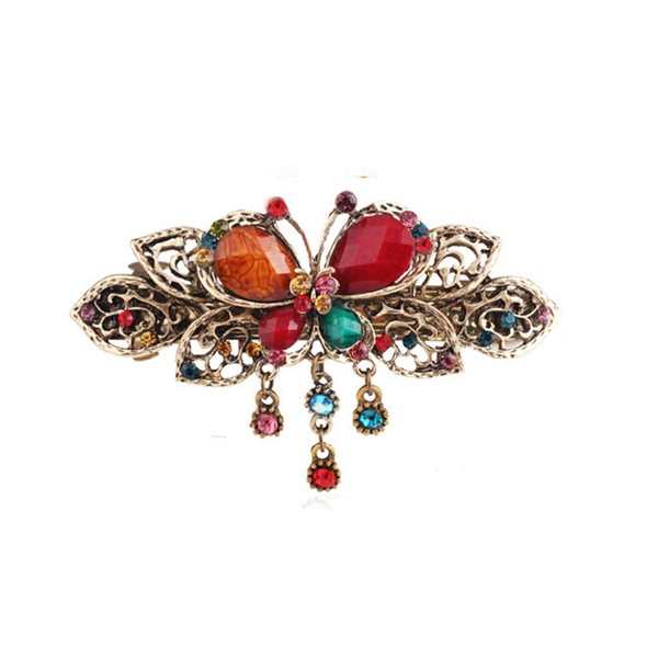 ZOONAI ヴィンテージ美しいクリスタルバタフライヘアクリップバレッタヘッドドレスアクセサリー (マルチ)