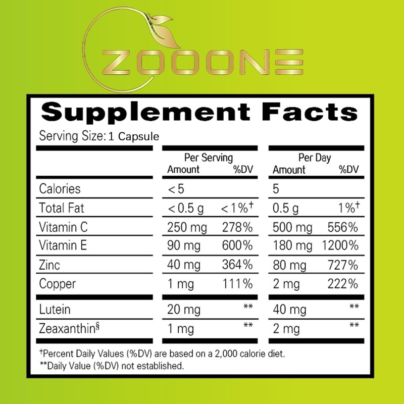 - | Quality You Can Trust |: Zooone’s Eye Vitamin and Mineral Supplement is backed by scientific research and manufactured with the highest quality ingredients. Designed for aging eye health, it helps protect against oxidative stress, strengthens visual acuity, and provides lasting comfort for the eyes. With Zooone, you can trust in a brand that values both your health and your satisfaction.