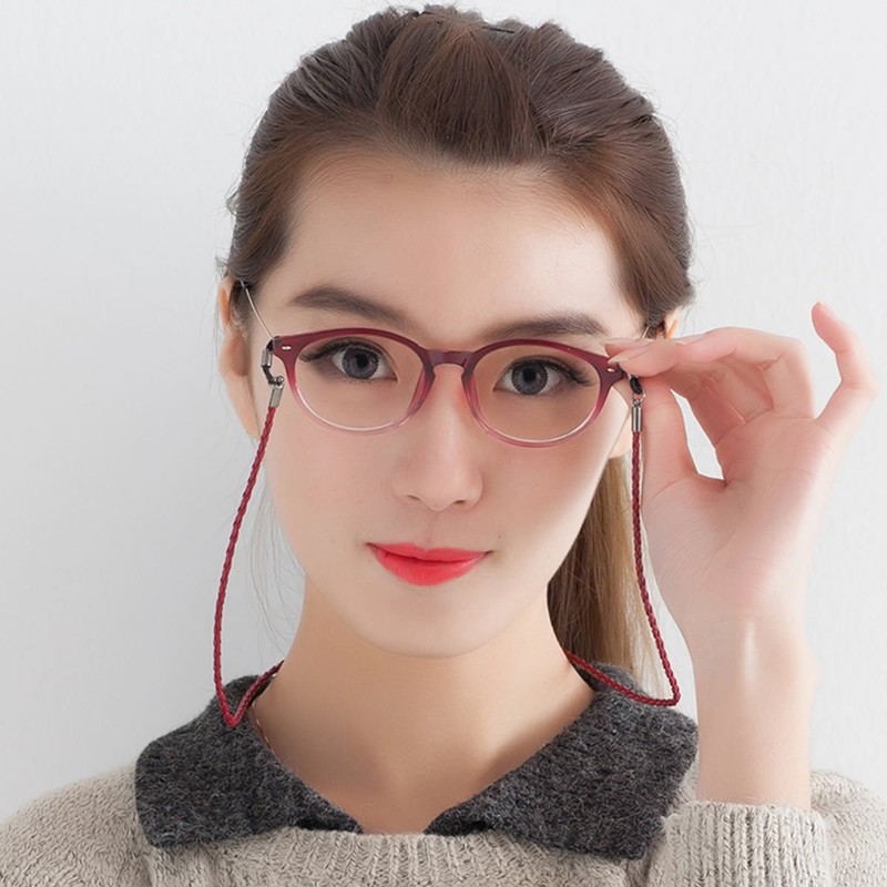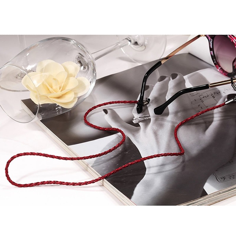 ZooooM ZM-KAWAMEGA Leather Simple Glasses, Sun Glasses, Chain, Glasses, Strap, Drop Prevention, Cord Reel,, red