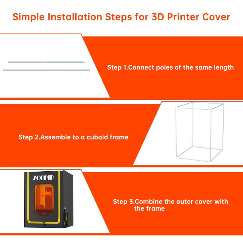 - 【Constant temperature】ZOOPIP 3D printer enclosure creates a stable and controlled environment; you can significantly reduce the risk of print failures and material wastage, ensuring high-quality results every time. Plus, it protects against dust and accidental touches from kids or pets.