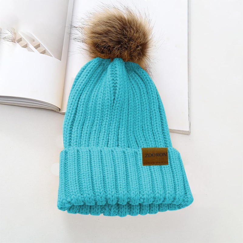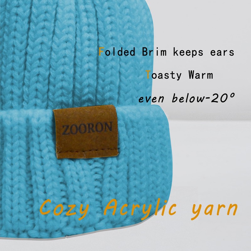 ZOORON Beanies for Womens Winter Knitted Beanies Hats with Faux Fur Pom Warm Knit Skull Cap (1Pack-Lake Blue)
