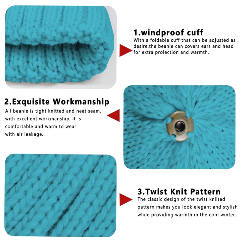 - Good Flexibility and Elasticity: Beanies Warm and Lightweight,the winter hats with a fur pompom,this puff ball is bigger, super cute and removable.
