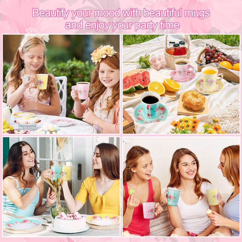 - Wide Application Range: paper tea cups serves your favorite tea, coffee, milk, water, iced tea, lemonade and juice; This tea party decoration is suitable for princess tea parties, bridal showers, floral birthday parties, Mother's Day and garden parties, Victorian themed events and more