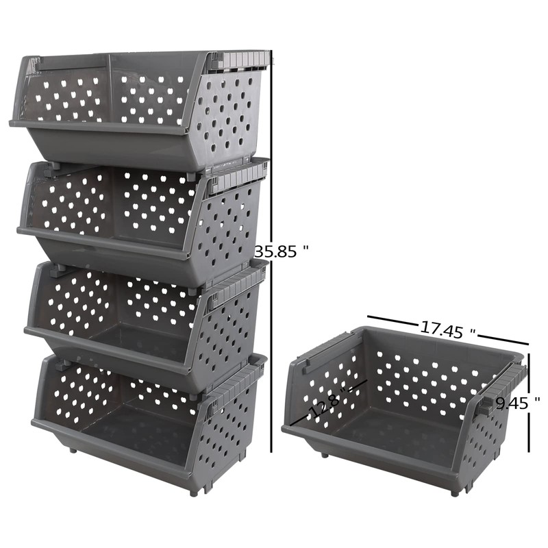 • 4 tiers stackable baskets , external dimensions of each one: 17.45" x 12.8" x 9.45" (L x W x H)