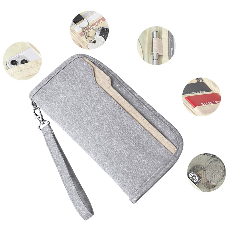 Zoppen Women's Lightweight Passport Wallet, Polyester, Scan Proof, Spacious, RFID Blocking, Unisex Design, Light Grey