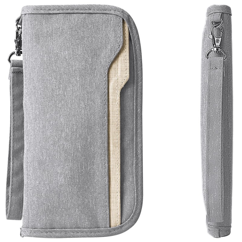 Zoppen Women's Lightweight Passport Wallet, Polyester, Scan Proof, Spacious, RFID Blocking, Unisex Design, Light Grey