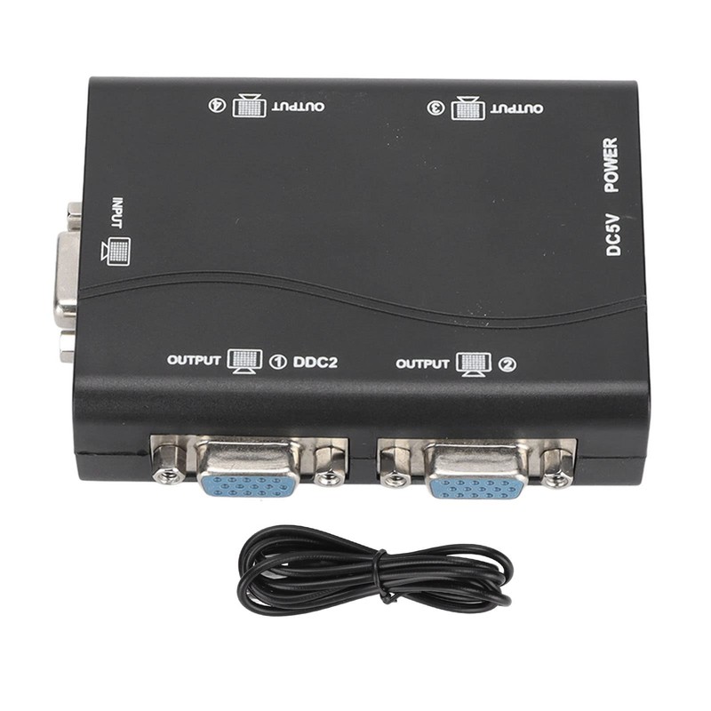 Zopsc 1 en 4 Salidas VGA Splitter Box Distribución de Video Duplicador 250MHz VGA Splitter 1920x1440 Divisor de Video HD Alimentado por USB para Computadora Portátil TV PC