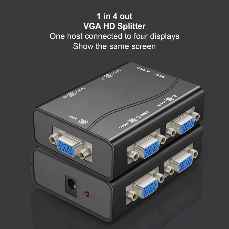- 1 entrada 4 salidas: divisor VGA HD, 1 entrada 4 salidas, un host puede conectar cuatro monitores de interfaz VGA, mostrar la misma pantalla, visión de alta definición 1080P, fuente de alimentación del cable de alimentación USB.