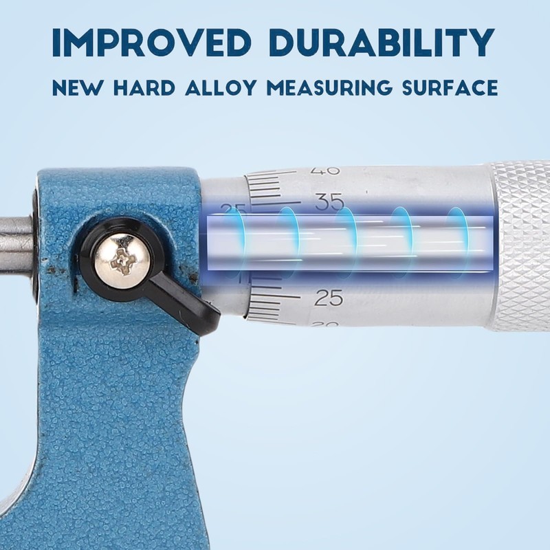 - VERSATILE TOOL: The alloy accurate micrometer set can be used as an outer diameter micrometer and a thickness measuring ruler, and is widely used for the accurate measurement of length, diameter or thickness