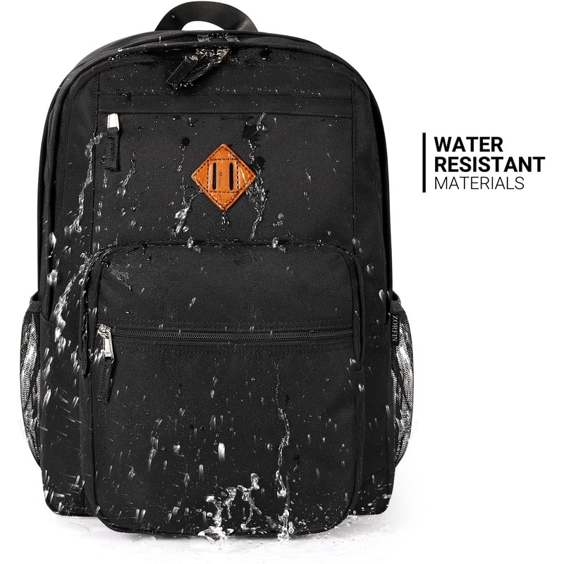 ZORFIN 26L Black Backpack for School, College, and Travel: Water Resistant Bookbag with 8 Compartments