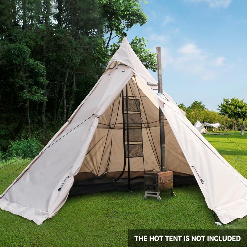 Zoring Hot Tent Inner Tent, 4 Season 3-4 Person Tipi Gear for Camping, 6.4ft Standing Room with Inner Mesh, Cold Weather Shelter for Family Fishing, Hiking, Hunting, Backpacking