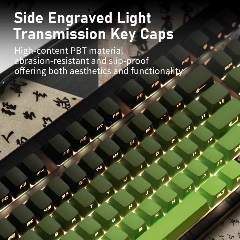- [PBT Keycaps and Compact Layout]: Made from durable, oil-resistant PBT material with side-engraved translucent design, offering both aesthetics and functionality. It saves nearly 20% space compared to the 104-key layout while retaining the number pad, making it more compact and efficient.