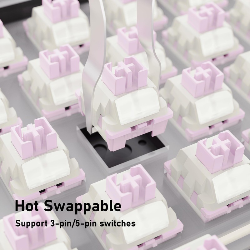 - [Full-Key Hot-Swappable and Highly Compatible]: Supports 98% of switches on the market, with pre-lubed satellite switches. The Sakura switches offer a smooth feel and soft sound, gentle yet powerful, with a balanced actuation force between light and medium, reducing finger strain. They have a lifespan of up to 50 million keystrokes.