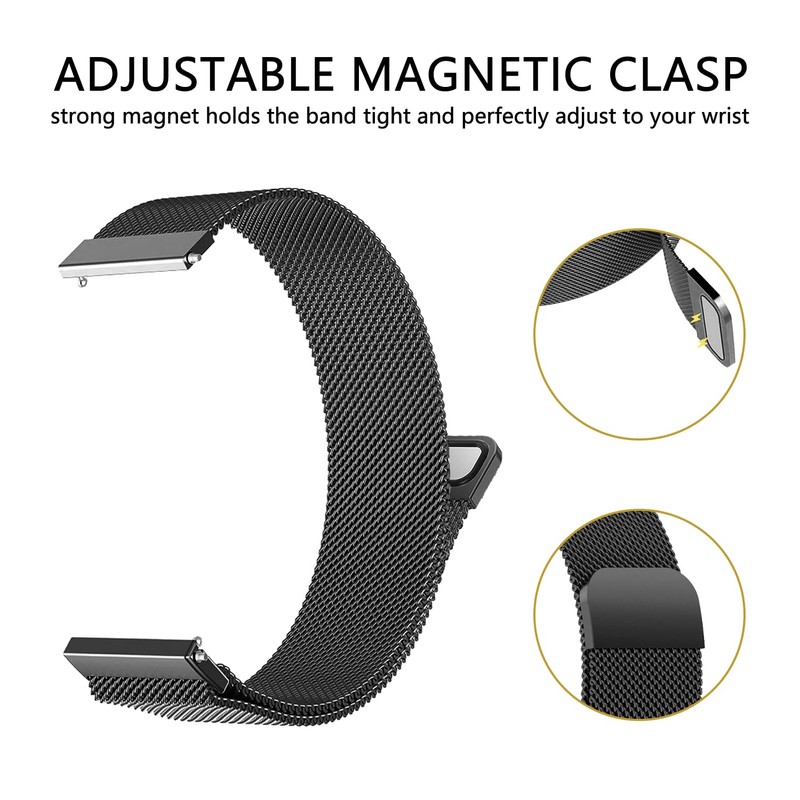 - [Magnet Clasp Design] The use of magnets to close the loop, No buckle needed,easy to stick and lock your bands. Strong Magnetic buckle keeps band secure.The quick release style of the strap allows you to easily install and remove the watch without any tools.can be freely adjusted according to the circumstance of individual wrist.