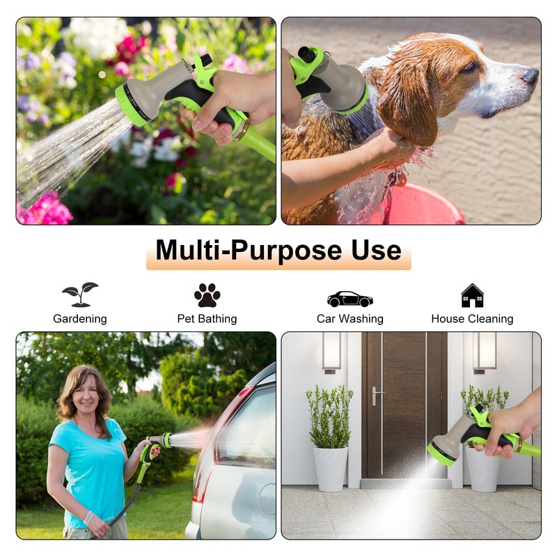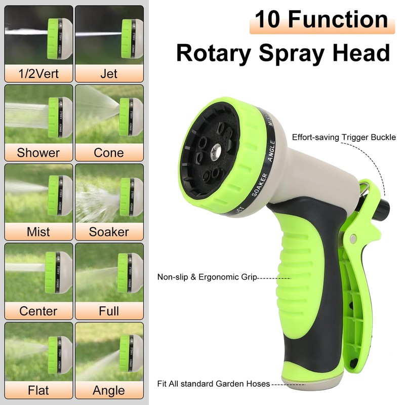 • 【10 Patterns Sprayer Nozzle】The garden hose nozzle supports 10 patterns, it has spray pattern options for every watering need, including Center, Full, Flat, Shower, Cone, Jet, Soaker, Angle, Mist, 1/2Vert, very convenient for switching
