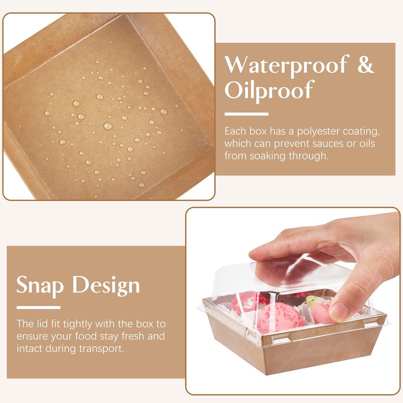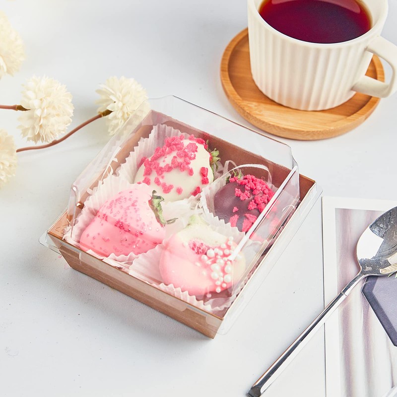 ZORRITA ZORRITA 50 Pack Small Paper Charcuterie Boxes with Clear Lids, 44 Inch Mini Cake Slice Boxes To Go Bakery Containers for Individual Desserts, Cookies, Strawberries, Treats (Brown)