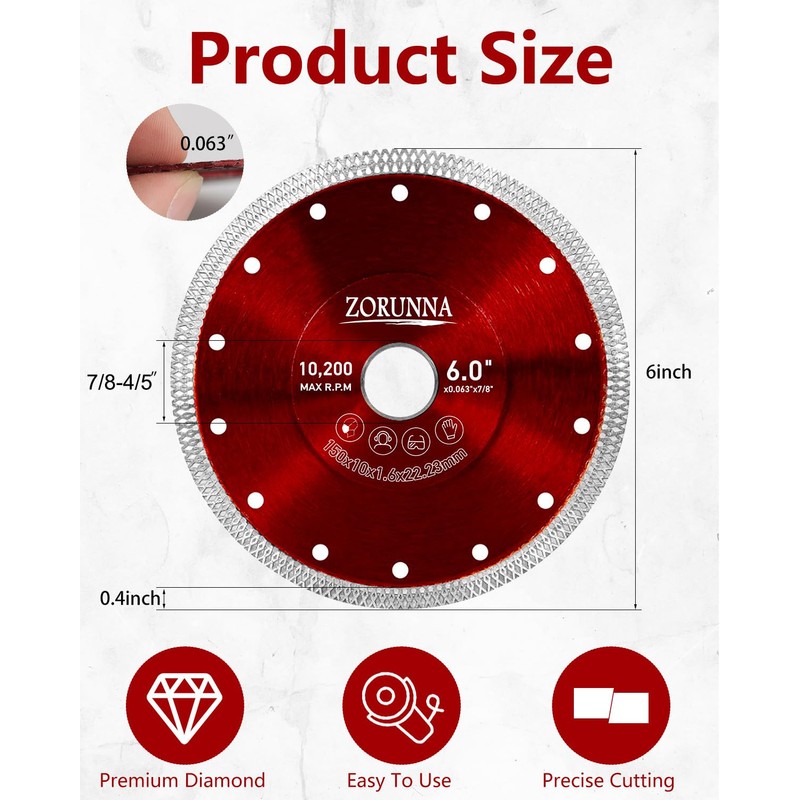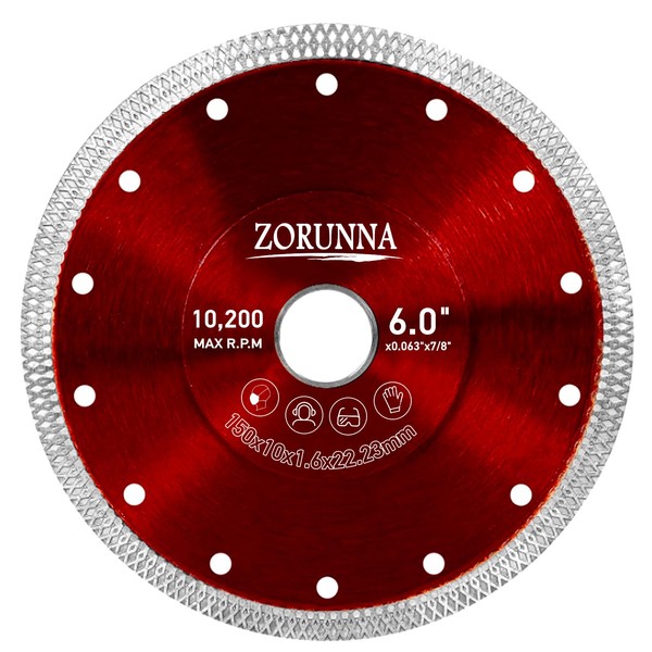 ZORUNNA 6" Diamond Blade for Angle Grinder, Super Thin Tile Cutting Blade for Smooth Cutting, 1Pcs Tile Cuttter Blade for Dry and Wet Cutting Porcelain Ceramic Tile Granite Marbles.