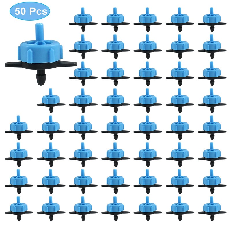 Zorveiio 50 Pcs Drip Irrigation Drippers 2 GPH Adjustable Irrigation Emitters Water Tubing Drip Tip, Sprinkler Emitters for Garden Watering Lawn Farming(Blue)