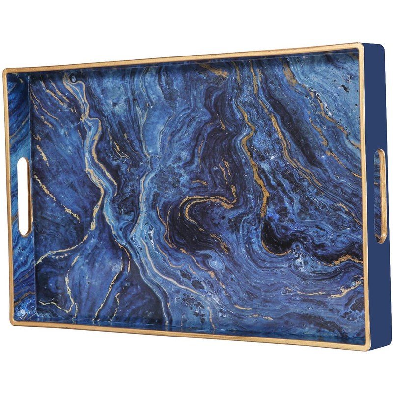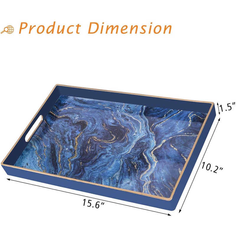 - Elegant Look - Chic rectangular shape designed with blue marbling pattern on inner bottom surface + chic gold top edge, this decorative tray can easily shine your things, adding a classy and modern touch.