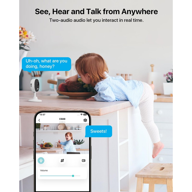 • Two-way audio and power control: thanks to the built-in microphone and speaker, you can listen and talk to people in real time. Up to 5 users can simultaneously access the live view to share beautiful moments. Your data is securely protected by the encrypted transmission. Ideal as a dog camera, baby camera, home camera for indoor surveillance.