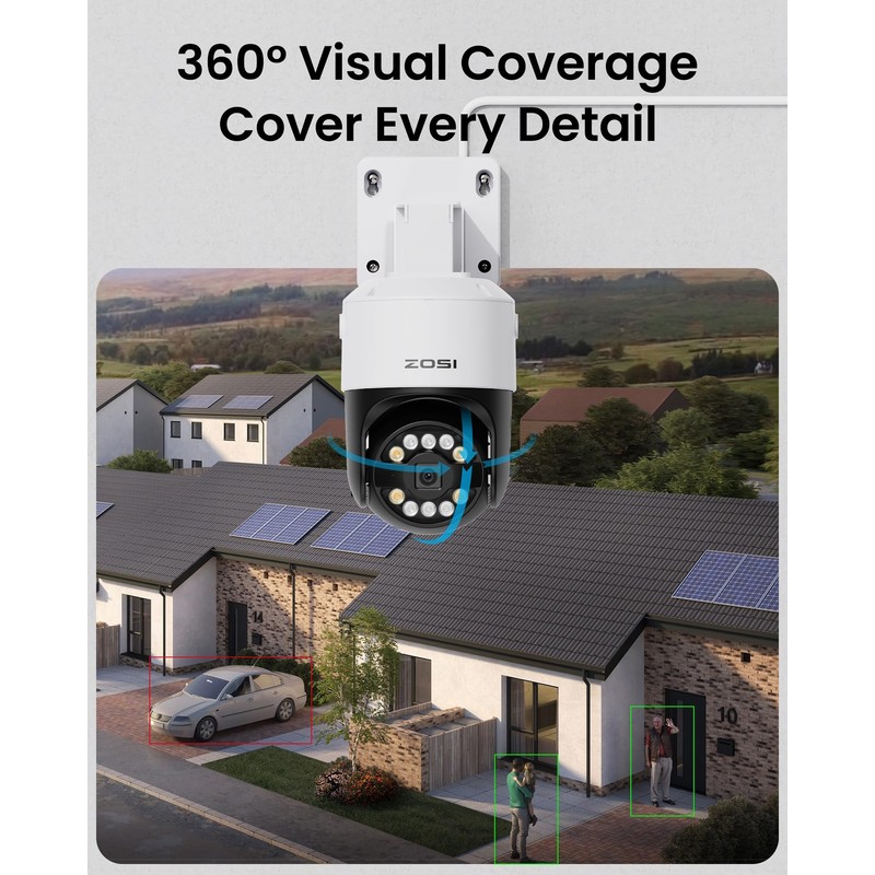 ZOSI 4K 8MP PoE Outdoor Surveillance Camera, 355°/140° Swivel, AI Person Detection, Automatic Tracking, Compatible PoE NVR, C296B
