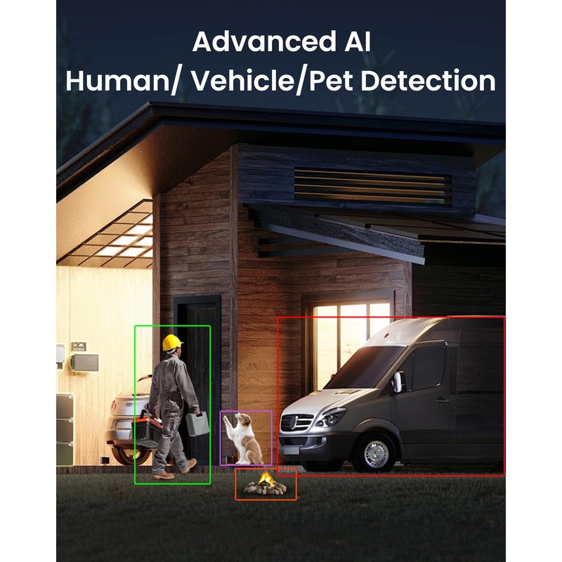 • AI-READING & RECORDING IN EQUIPMENT: The C296 4K IP camera captures and tracks person and vehicle as soon as they enter the surveillance area. In case of suspicious movement, the camera triggers a loud alarm sound as well as a bright light warning. (For the person recognition function, an update to NVR version 2.0.8 is required.)