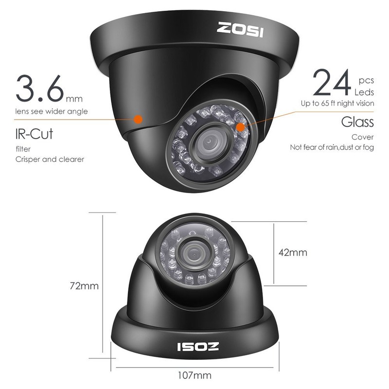- 【65FT NIGHT VISION】-- - Built in 24pcs IR LEDs, IR 65ft/20m night vision , Megapixel 3.6mm lens with IR CUT provide clear images, even in the dark.