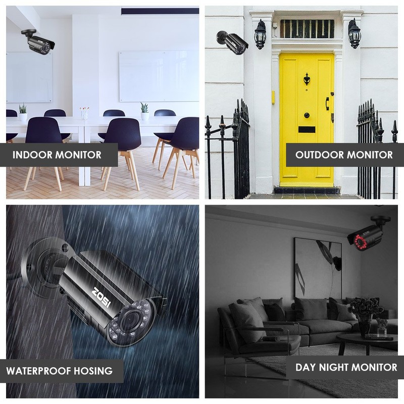 • 【Weatherproof Bullet/Dome Camera】The Camera use Aluminum Metal/ABS materials, can effectively prevent rust,Can be installed in almost any outdoor or indoor place. Built in 24pcs IR LEDs, Get a sharp and crisp image day or night with the camera's automatic IR-CUT filter.