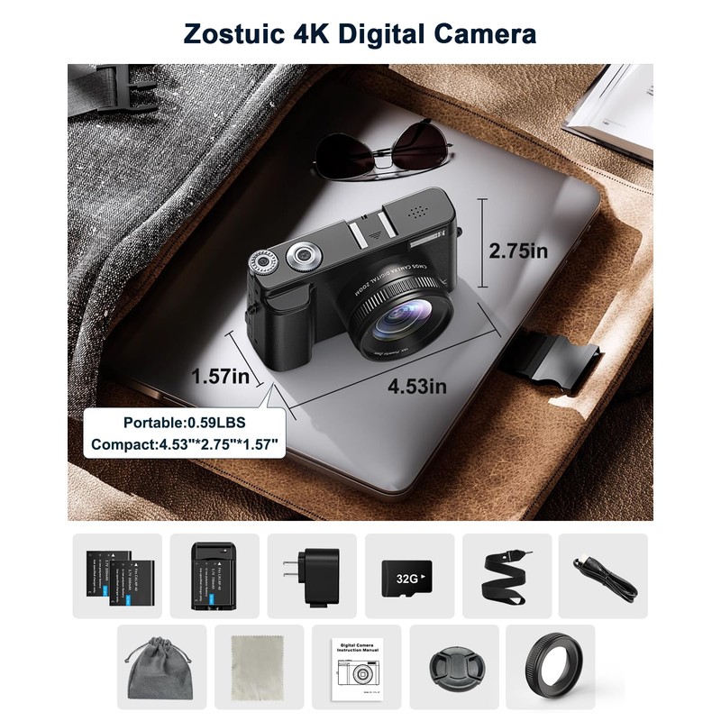 - [PORTABLE CAMERA WITH FLASH] Compact travel camera with two 800mAh large-capacity batteries weighs 0.59 LBS and is the size of a palm. You can manually shoot for a long time without tired, and easily slip Zostuic digital camera for travel into your bag. In addition, a digital camera for photography and video has its built-in flash, which can take clear photos and videos in darker environments, and record the cultural scenery you want to record on a relaxing night!
