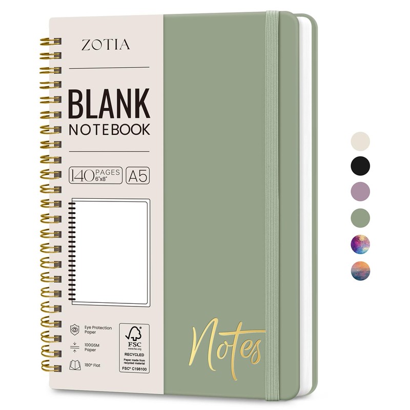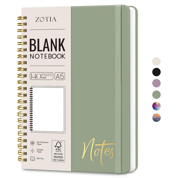 ZOTIA Blank Spiral Journal Notebook for Women, A5 Blank Notebook Journals for Writing, Hardcover Notebooks for Work, Note taking and Office School Supplies,140 Pages - Green