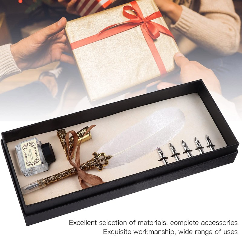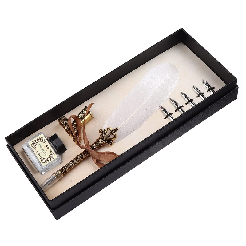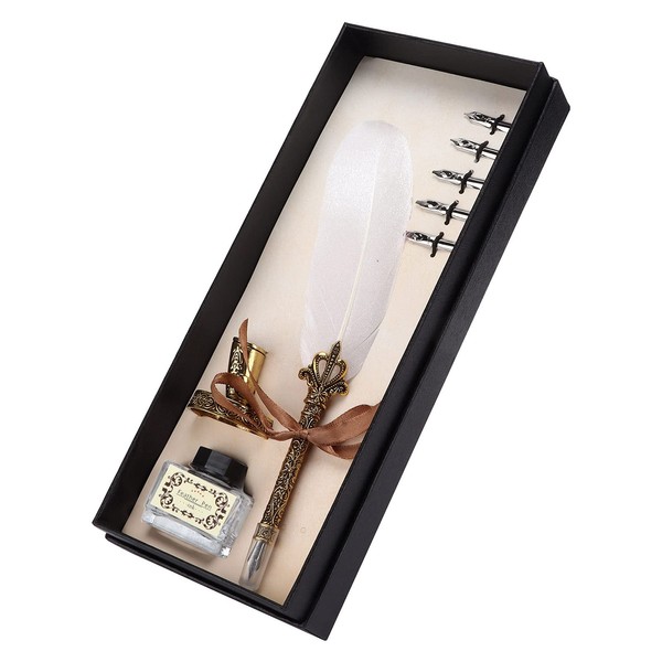 zottel Kalligraphie-Stift-Set, Antikes Gänsefeder-Set für Kalligraphieübungen für Lehrer zum Schreiben für Schüler (Weiß)