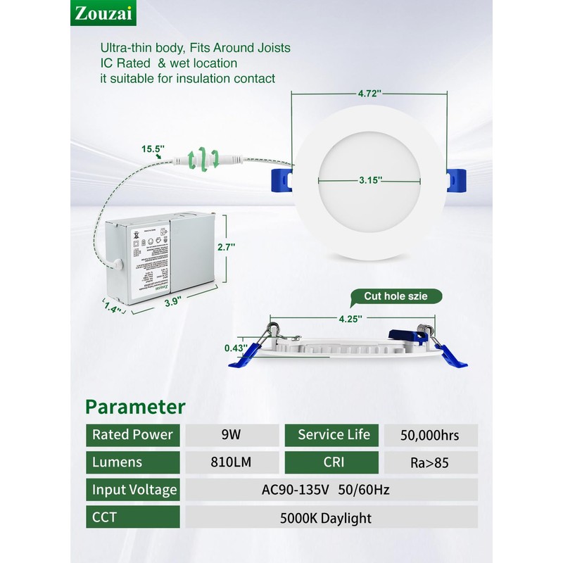 zouzai 20 Pack 4 Inch Ultra-Thin LED Recessed Ceiling Light with Junction Box 5000K daylight Dimmable Can-Killer Downlight - ETL and Energy Star Certified