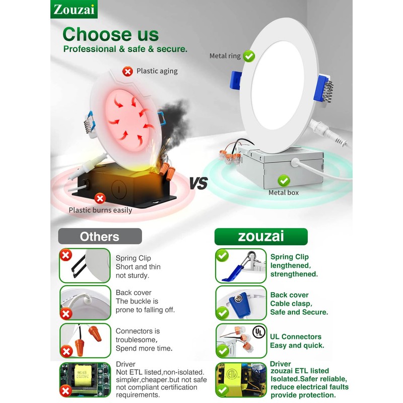 zouzai 20 Pack 4 Inch Ultra-Thin LED Recessed Ceiling Light with Junction Box...