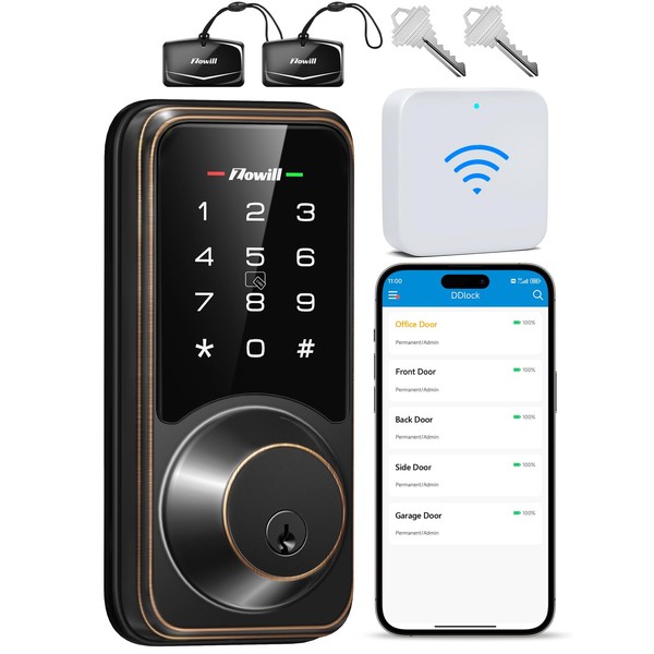 Zowill WiFi Smart Lock, Keyless Entry Door Lock with APP Control, Touchscreen Keypads, Auto Lock Smart Deadbolt for Front Door, Home, Airbnb(Included G2 Gateway)