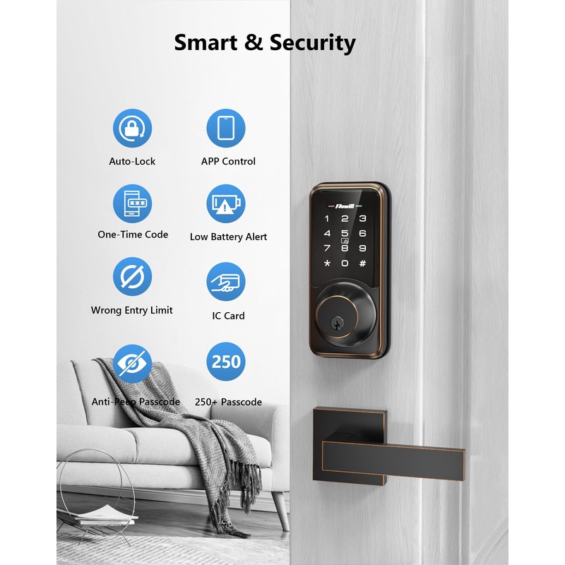 • 【APP Control & Ekeys Sharing】Smart deadbolt lock offer APP control, allowing you to set passwords, manage access rights, and view access logs. You can also authorize family members, guests, or tenants to use the APP through eKey