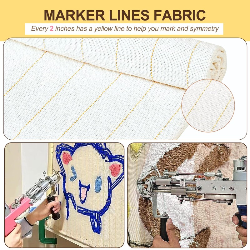 - MARKING LINES DESIGN - The tufted fabric backing is woven with marking lines, there are yellow lines every 2 inches as a guide to help you mark and symmetry as you work. Makes your crafting easier. (Note: The tighter the tufting fabric, the more evenly tufted the carpet will be)