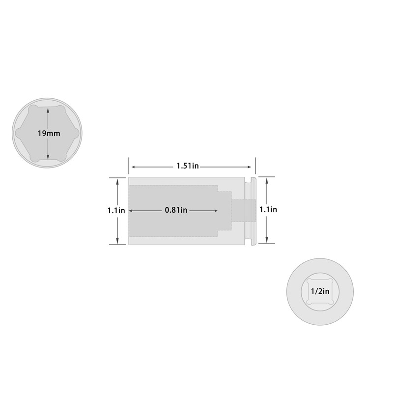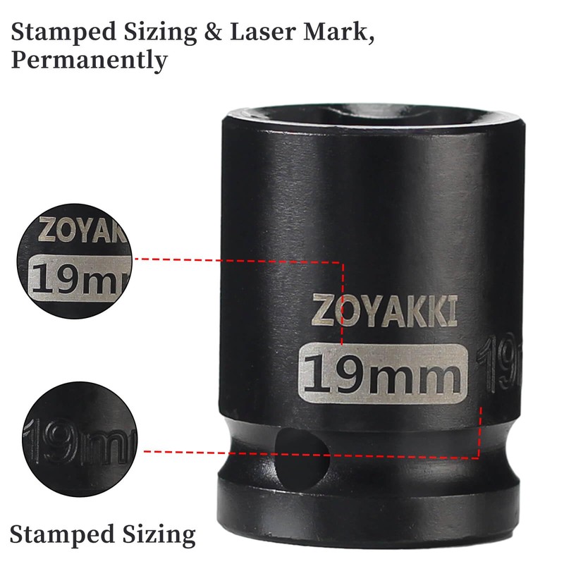 ZOYAKKI ZOYAKKI Shallow Impact Socket, SAE, 1/2 Inch Drive, 6 Point, Metric x 19 mm