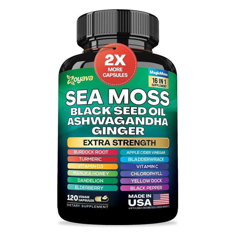 Zoyava Sea Moss Supplement - All-in-One Multivitamin with Black Seed Oil, Ashwagandha & 15+ Extra Strength Ingredients - 60 Capsules - MADE IN USA:_120 Count (2 Months Supply)