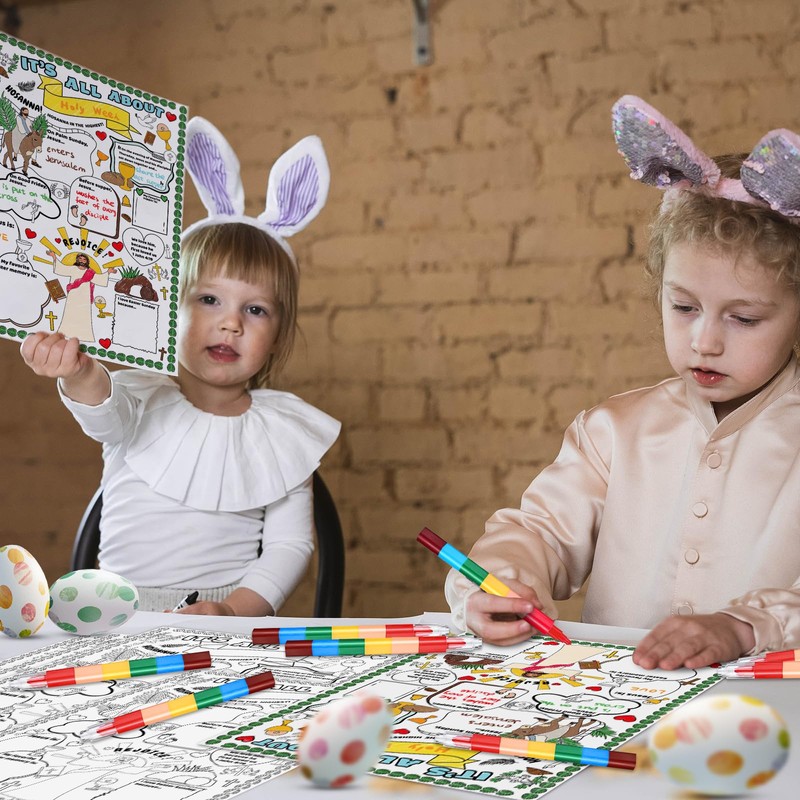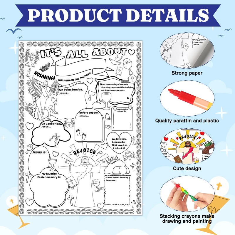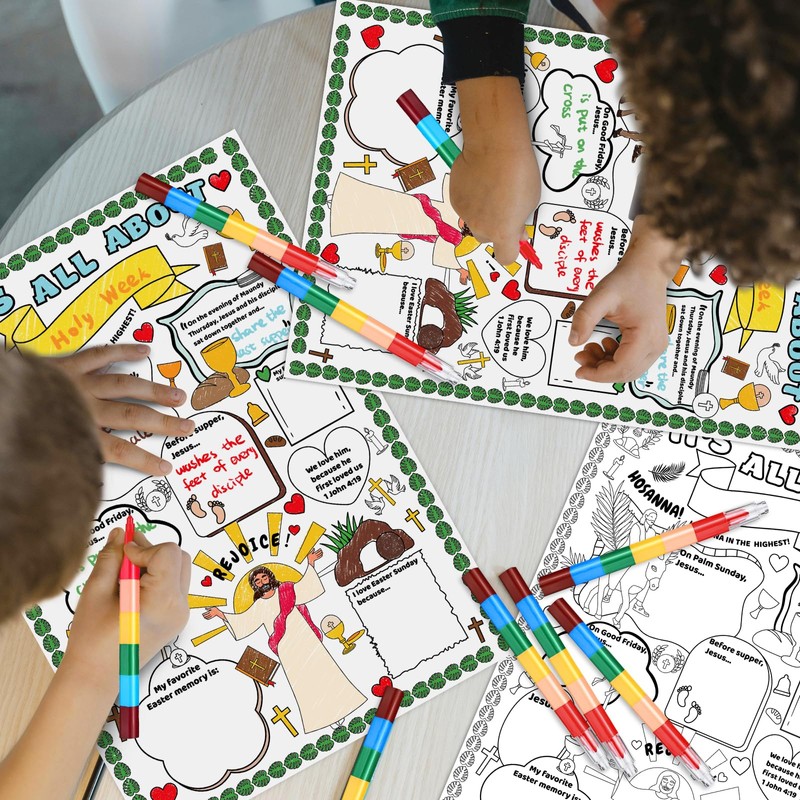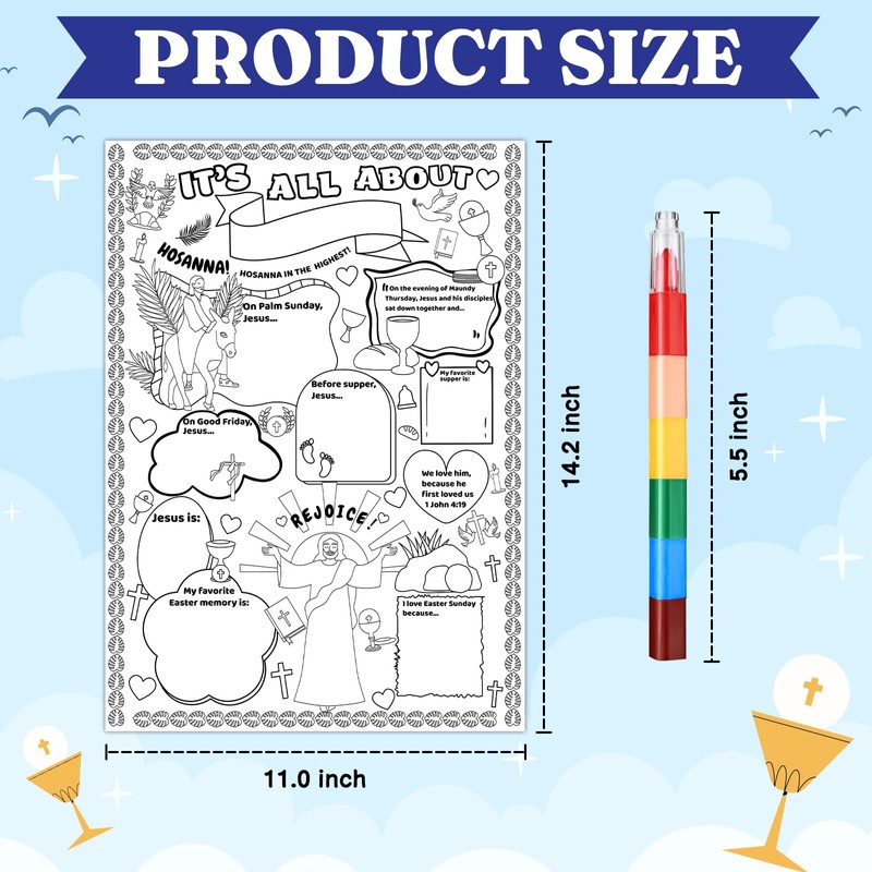 Zoyeven 30pcs All About Holy Week Color Your Own Religious Poster Easter Day Poster with Stacking Crayons Palm Sunday Ideal Project Chart Fill in Poster Sunday School Supply