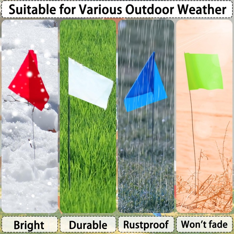 - MARKING FLAGSMade of PVC, the flags do not tear easily, and they are attached to a high carbon steel wire pole with a high-strength adhesive. These poles are also able to easily penetrate the soil without deforming. Support writing on it for better markup, Marking flags are best marking solution.
