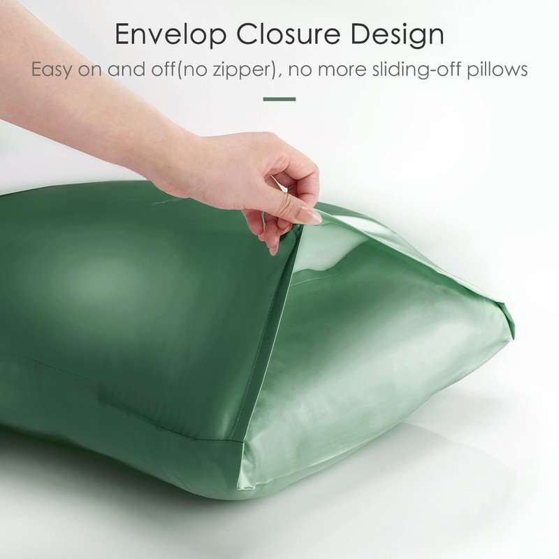 Zozojo Silk Satin Pillowcase, Soft Pillow Cases for Curly Hair and Skin, Silky Cooling Pillow Covers with Envelope Closure, Match with Your Room Décor Set of 2 Pack, (20 x 26 Inches), Dark Green