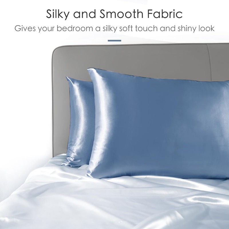 Zozojo Silky Satin Pillowcase, Soft Pillow Cases for Curly Hair & Skin, Similar to Silk Cooling Pillow Covers with Envelope Closure, Match Your Room Décor Set of 2 Pack, (20 x 40 Inches), Sky Blue