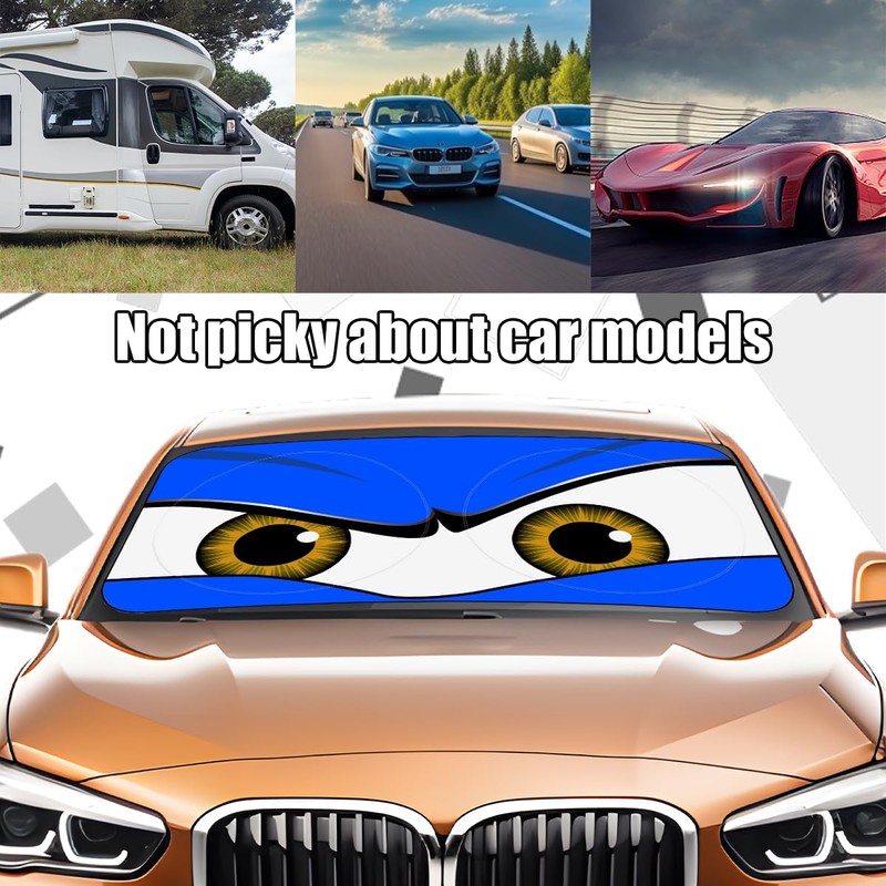 - Fun Design: The sunshade is designed with a fun eye pattern, adding a touch of playfulness and cuteness to your car. Unique appearance design, make the sunscreen no longer monotonous, both practical and eye-catching. When the sunshade is installed on the windshield, it is as if the car is "blinking its eyes", bringing a good mood for traveling.