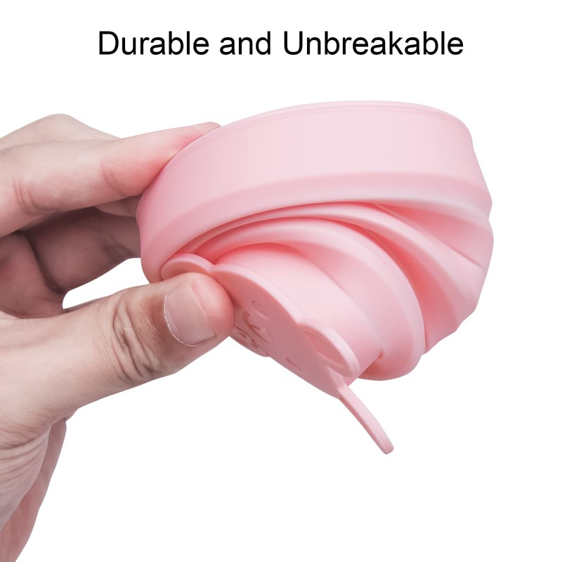 ♥. The main features for this foldable silicone cup: durable and unbreakable, suitable for hot and cold water, easy to rinse out and clean.