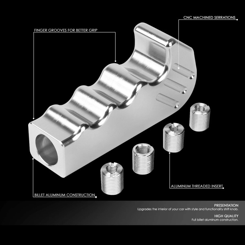 Upgrades the interior of your car with style and functionality with our Grooved Weighted Billet Shift Knob. Easy to Install with included thread adapters and 270gram weight. This will provide a crisp solid shift for your vehicle